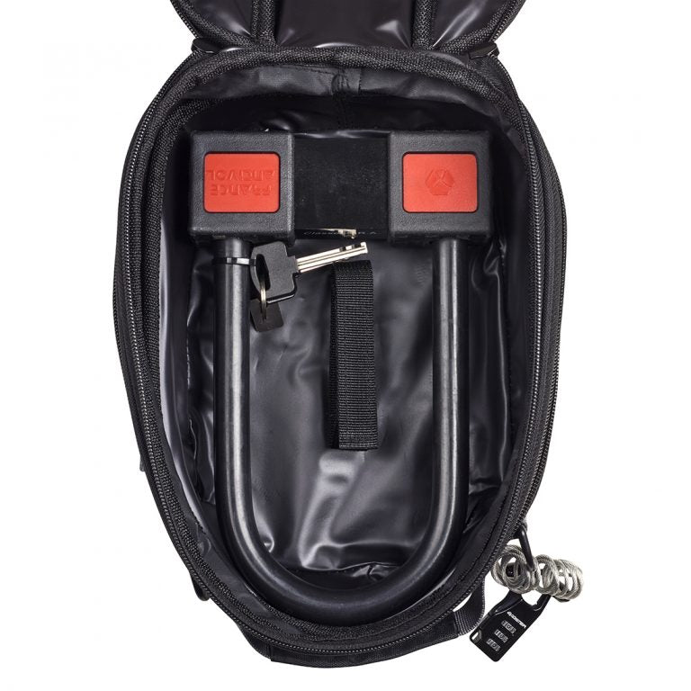 Der LOCKER ist eine spezielle Tasche, um Ihren Scheibenblock, Ihre Kette oder Ihr U zu lagern und wird an Ihrem Sattel oder einer Rückplatte befestigt.