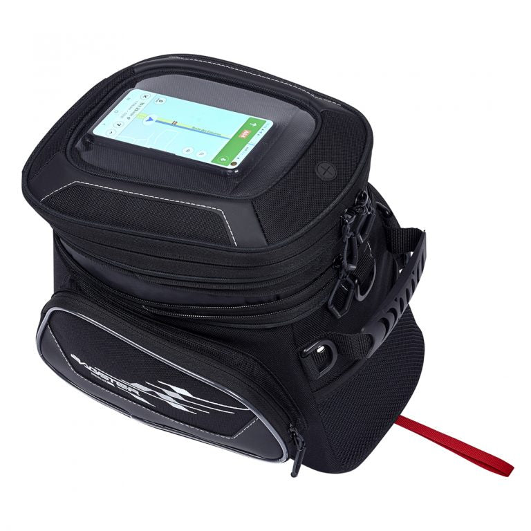Der RAPTORRAPTOR-Beutel, der speziell auf kleine gebogene Tanks ausgerichtet ist, ist mit dem LOCK’N START-System verbunden. Es hat alles von einem großen mit seinen mehreren Taschen und Fächern