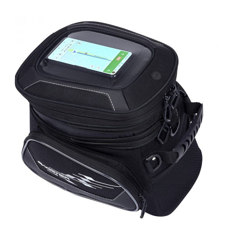 Der RAPTOR TABS Beutel, speziell für kleine gekrümmte Tanks, wird mit dem TABS-System (traditionelle oder magnetische Verbindungselemente separat erhältlich) befestigt. Es hat alles von einem großen mit seinen mehreren Taschen und Fächern.